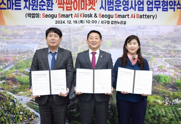 [파이낸셜경제=김예빈 기자] 대전 서구는 19일 구청 갑천누리실에서 (사)한국배터리순환자원협회 및 일월정밀㈜와 함께 ‘스마트 자원순환마켓 시범운영 사업’ 업무협약을 체결했다.
