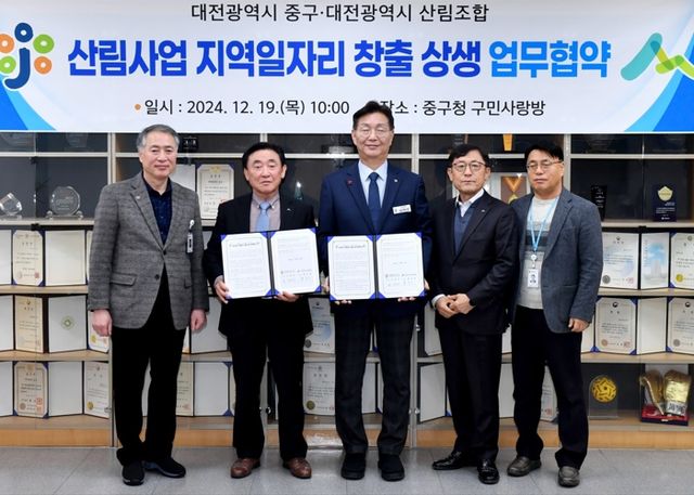 [파이낸셜경제=김영란 기자] 대전 중구는 19일 대전광역시 산림조합과 '산림사업 지역일자리 창출 및 지역순환경제 조성을 위한 업무협약'을 체결했다고 밝혔다.