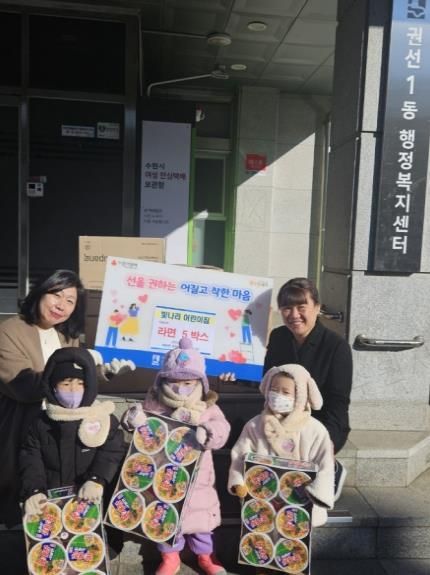 [와이뉴스] 수원시 권선구 권선1동은 18일 빛나라 어린이집으로부터 라면 5박스를 기탁받았다고 밝혔다.