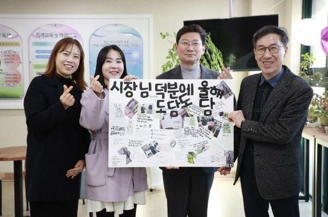 정혜정 한빛초 교장은 “시장님이 교육에 누구보다 큰 관심을 두고 학교를 많이 지원해 주셔서 너무 감사하다”며 내년엔 우리 학교가 시가 지원하는 ‘학교 숲 조성 사업’에 선정돼 학교 안 유휴 부지를 활용해 작은 숲을 만들 수 있게 됐는데 우리 아이들의 정서에도 큰 도움이 될 것 같다“며 고마움을 표했다.