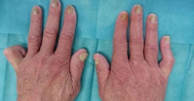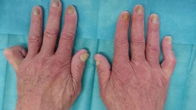 이 남성은 호흡곤란을 겪어 병원을 찾았고, 3년간 양쪽 다리가 부었으며 2년간 손발톱이 노랗게 변하는 증상을 보였다. 병원에 도착했을 당시 남성은 호흡곤란으로 숨소리가 불규칙했고, 손발톱은 노랗고 두꺼워 부서지기 쉬운 상태였다.