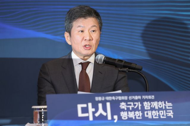 정 회장은 “체계적이고 전문적인 전력강화위원회를 운영해 2026 국제축구연맹(FIFA) 북중미 월드컵 8강, 2026 아시안게임 금메달, 2027 아시안컵 우승, 2028 올림픽 메달 획득을 목표로 할 것”이라며 “대한민국 축구종합센터를 축구 산업의 중심 플랫폼으로 완성시켜 축구 산업 전반을 확장하겠다. 또 한국형 디비전 승강제를 성공적으로 완성시키고, 선거인단을 400명으로 확대하는 등 협회를 개혁할 것”이라고 말했다.