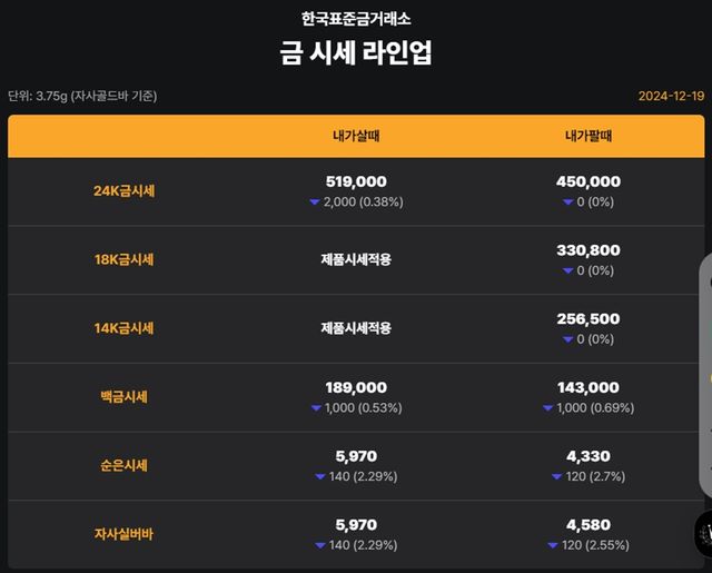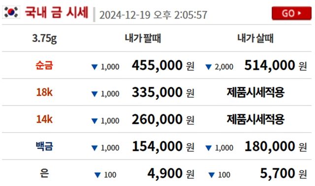 순금(24K) : 매입가 51만 4000원 / 매도가 45만 5000원
