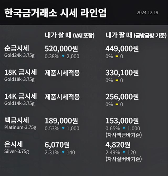 순금(24K) : 매입가 52만 원 / 매도가 44만 9000원