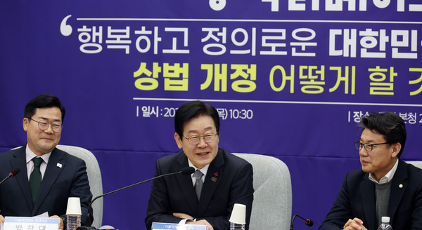 민주당은 지난달 이사의 충실 의무 대상 확대를 골자로 하는 상법 개정안을 당론 발의했다. 이정문 정책위 수석부의장이 대표 발의한 개정안은 주주에 대한 이사의 충실 의무를 명시했다. 회사를 위해 그 직무를 충실하게 수행하도록 하는 이사의 충실 의무 대상에 '주주의 비례적 이익'을 추가하는 내용을 담았다.