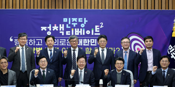 이재명 더불어민주당 대표가 19일 이사의 충실의무를 주주로 확대하는 내용을 골자로 하는 상법 개정안 마련을 위한 정책 토론회를 열고 재계 및 개미 투자자들과 의견을 교류했다.