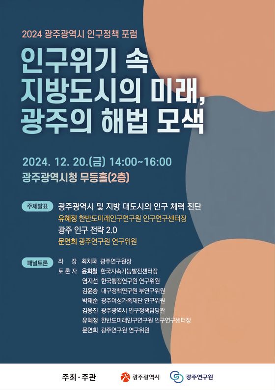 청년인구 유출과 저출생 가속화 등 인구 감소 위기 속에서 광주의 인구문제를 진단하고 해법을 모색하는 장이 마련된다.