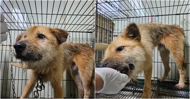 19일 페이스북 '사지말고 입양 하세요'에 겉모습 때문에 장시간 쇠줄에 묶여 지낸 한 유기견의 사연이 올라왔다.