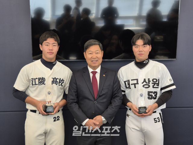 강릉고 포수 이율예, 대구상원고 외야수 함수호가 제 8회 이만수 포수상과 홈런상의 주인공이 됐다.