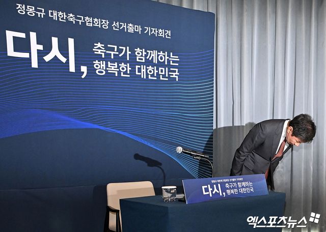 앞서 4선 연임 도전 의사를 밝힌 정 회장은 이번 기자회견을 통해 내년 1월8일 열리는 대한축구협회장 선거 출마를 선언하며 선거 출마를 결정하게 된 배경과 공약 등을 밝혔다.