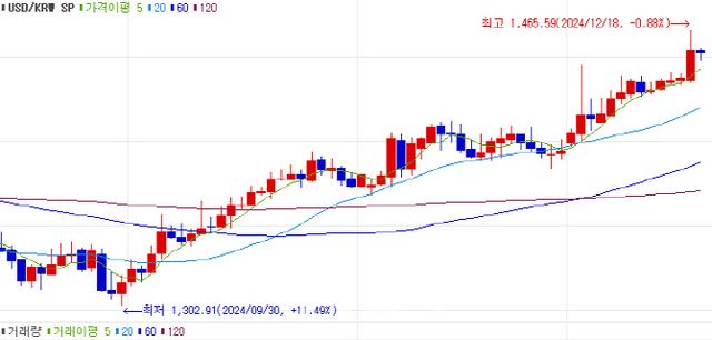 환율이 1450원을 웃돈 건 장중 고가 기준으로도, 종가(정규장) 기준으로도 글로벌 금융위기 때였던 지난 2009년 3월 이후 15년 9개월 만에 처음이다.