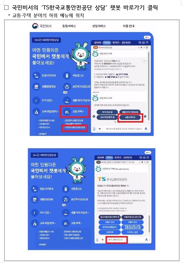 ◆TS한국교통안전공단 챗봇 서비스 접속 방법