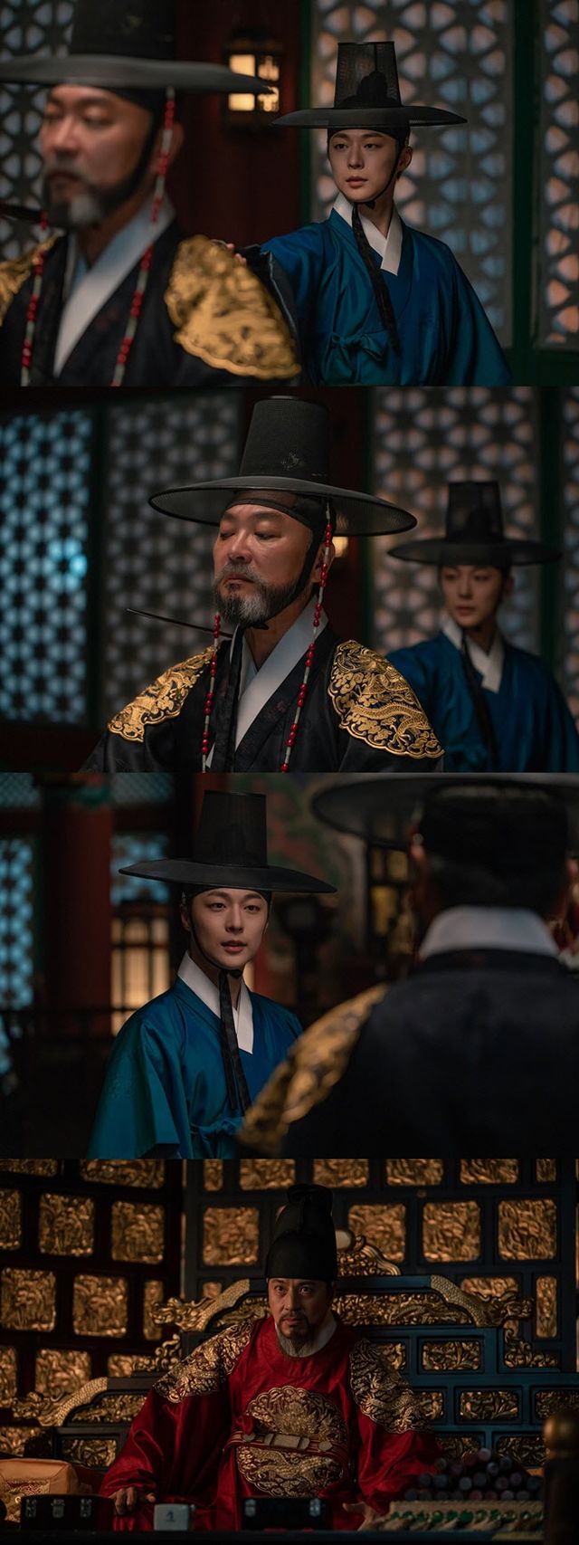 공개된 스틸 속 무영군 이은(배인혁 분)은 조선 최대 객주 용천루의 주인 천방주(김의성 분)의 목에 검날을 겨누고 있다. 자신에게 겨눠진 검의 끝을 매섭게 노려보는 천방주는 한 치의 흔들림 없는 꼿꼿한 자세로 이에 맞선다. 왕 이현위(한재석 분)는 용상에 앉아 이를 놀란 눈으로 바라보고 있어 세 사람의 긴장감 넘치는 삼각 구도가 흥미를 더한다.