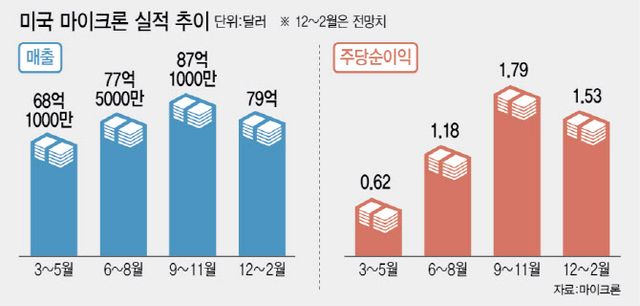 다만 시장이 주목한 것은 추후 전망치였다. 마이크론은 2025회계년도 2분기(12~2월) 실적 가이던스를 79억달러로 제시했는데, 이는 시장 전망치인 89억9000만달러보다 12% 낮은 수준이다. 마이크론은 삼성전자, SK하이닉스와 함께 ‘메모리 3강’으로 꼽히는 회사다.