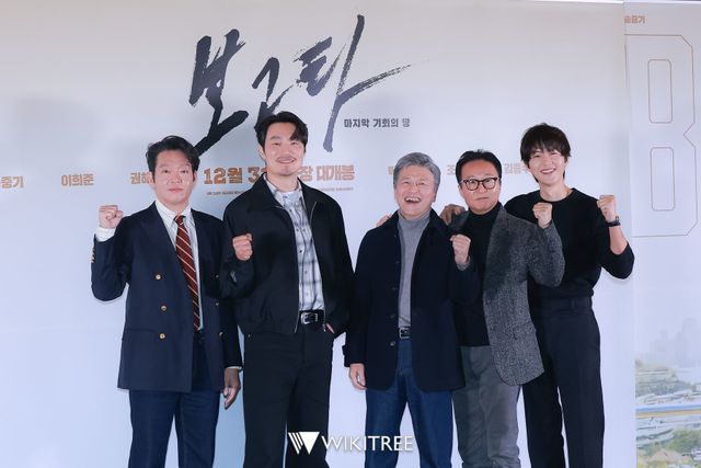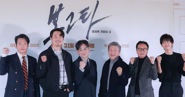 19일 오후 메가박스 코엑스에서 '보고타: 마지막 기회의 땅' 언론시사회가 진행됐다. 시사회에 참석한 배우 송중기, 이희준, 권해효, 박지환, 김종수, 김성제 감독이 포즈를 취하고 있다.