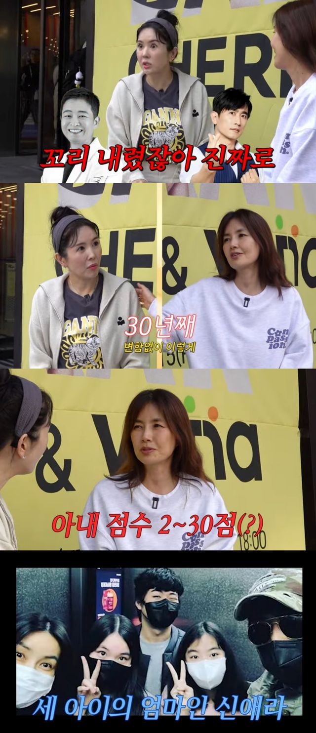 틈새를 이용해 신애라가 자신의 유튜브 채널을 홍보하자 장영란은 신애라의 남편 차인표의 사랑꾼 면모를 언급하며 "항상 우리 남편을 자부했다가 형부를 보고 난 다음에 꼬리를 내렸다"고 덧붙였다. 1995년에 결혼한 차인표와 신애라는 연예계 대표 잉꼬 부부다.