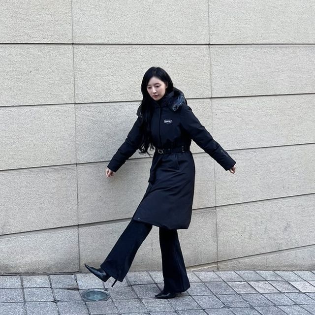 사진 속 김지원은 무릎까지 오는 기장의 패딩을 입고 루즈핏한 팬츠에 강렬한 블랙 힐을 매칭한 올블랙 룩으로 시선을 사로잡는다. 특히 걸어가는 모습 속에서 왠지 뚝딱이는 포즈로 귀여움을 더해 보는 이들의 미소를 더한다.