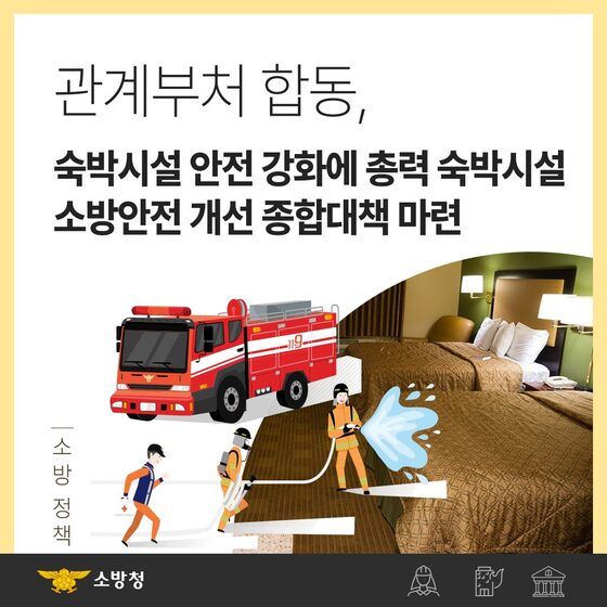 허석곤 소방청장은 “전문가와 현장 의견을 수렴하고 행안부 등 관계부처와 적극 협업해 현장에 실효성 있는 종합대책을 마련했다”며 “발표에 그치지 않고 지속해서 점검하고 보완해 숙박시설에 대한 소방안전을 강화할 수 있도록 최선을 다하겠다”고 말했다.