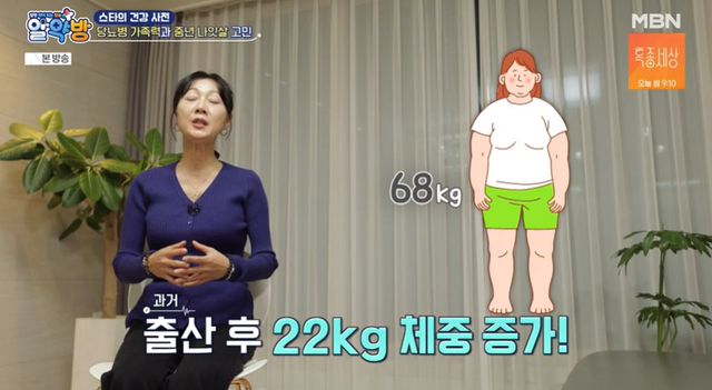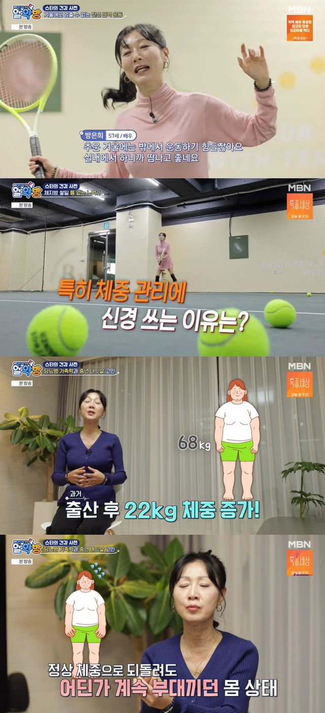 19일 방송된 MBN '알면 약이 되는 방송'(이하 '알약방')에는 배우 방은희가 과거 출산 후 늘어난 체중과 나잇살 고민에서 벗어날 수 있었던 방법을 밝혔다.