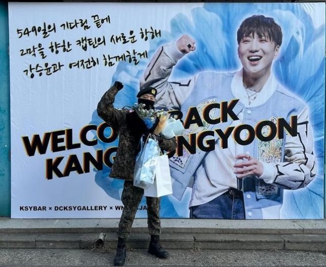 강승윤은 “기다려주신 우리 이너서클과 저의 사람들 그리고 함께 동고동락한 전우들에게 깊은 감사와 사랑을 전한다”면서 “더불어 지금까지 그리고 앞으로도 대한민국을 수호해왔고 수호하는 모든 국군 장병들에게 마음 깊은 존경과 감사의 박수를 보낸다”고 덧붙였다.