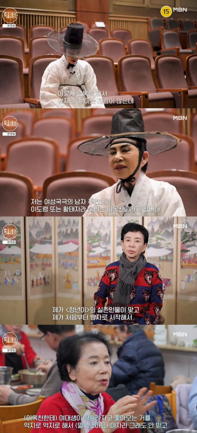 이옥천은 "남복을 해서 남자인 줄 아는 사람이 많은데 저는 여성국극의 남자 주연으로 이도령 또는 황태자라 불린다"며 "'정년이'의 실존인물이 맞다. 제가 처음에 방자로 시작해서 이도령이 되고 왕자가 됐다"고 설명하며 여성국극의 전설적인 남역 배우로서의 경력을 밝혔다.