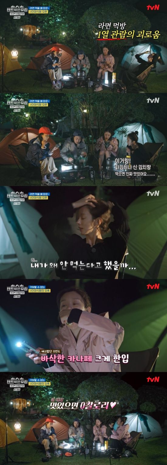 이주빈 홀로 라면을 먹지 않았고, 다른 멤버들은 라면을 먹으며 흡족해했다. 라미란은 "뜨끈한 거 먹으니까 녹는다"라며 감탄했다.