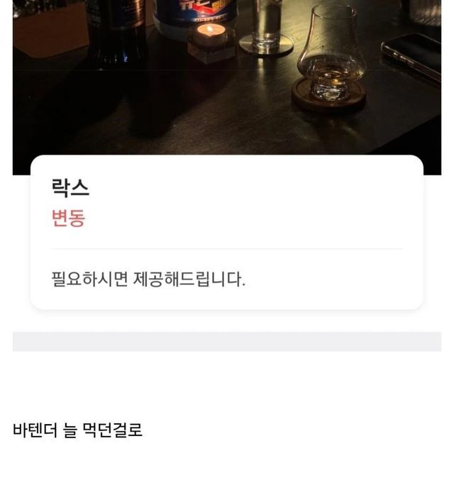 ??? : 저 이거 안 시켰는데요?바텐더 : 저쪽 여성분이 드리는 겁니다.