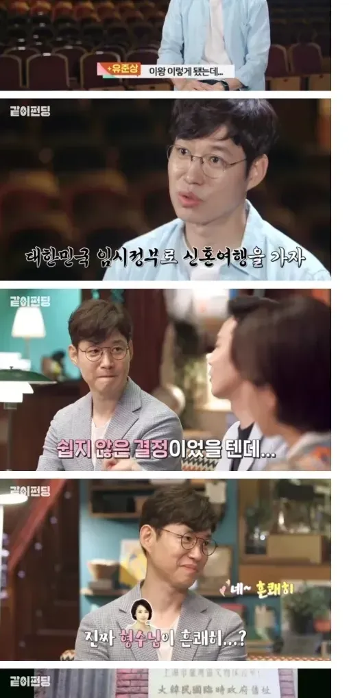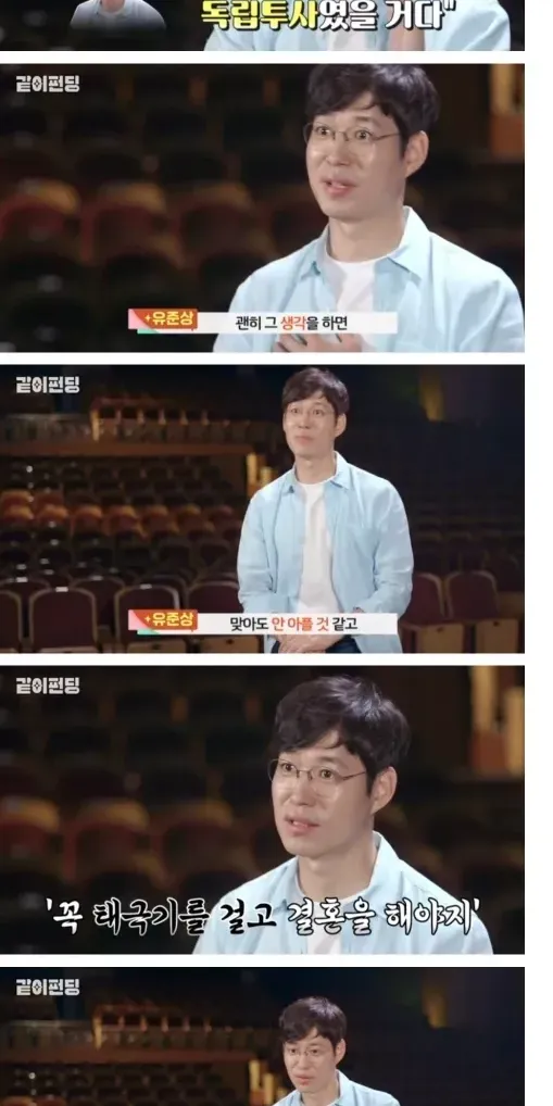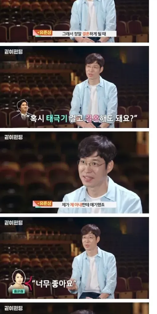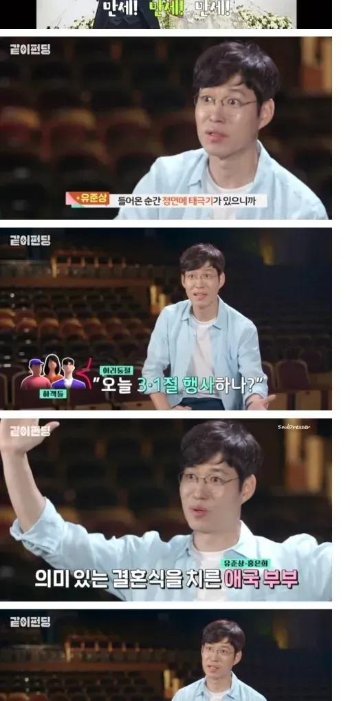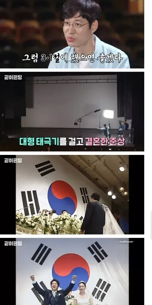 대형 태극기 걸고 결혼한 유준상 홍은희 부부