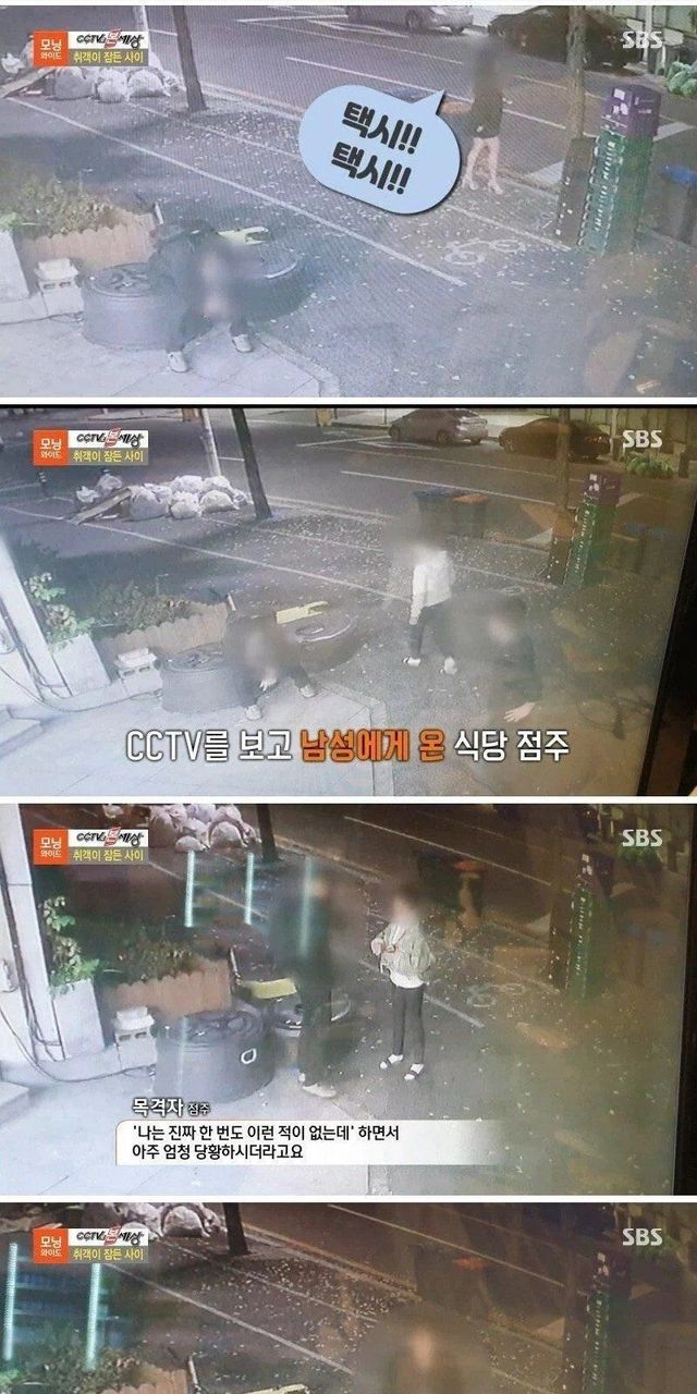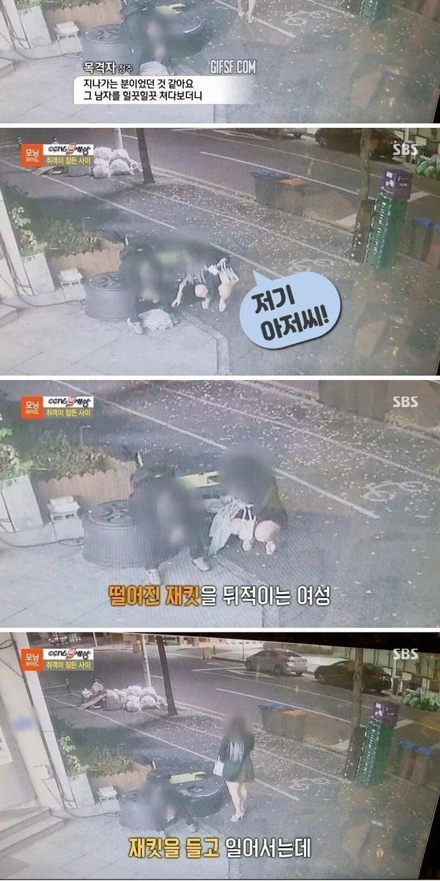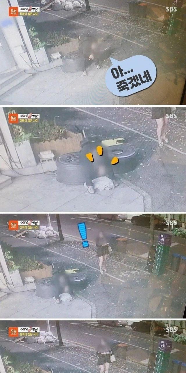 술취한 남자가 걱정된 여자.