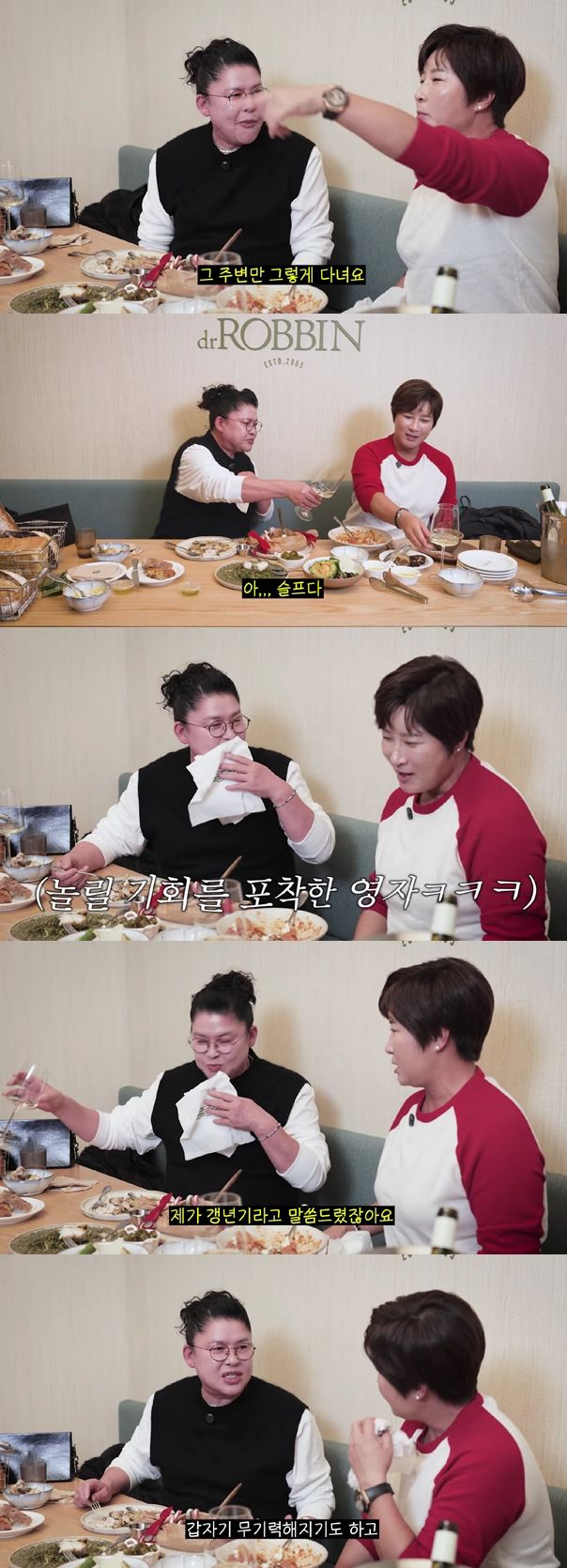 이어 박세리가 "술 마셔서 더운가보다"라며 빨개진 얼굴을 언급하자 이영자는 "술을 못 먹는다"라며 놀렸고 박세리는 "제가 갱년기라고 말씀드리지 않았나"라며 답했다.