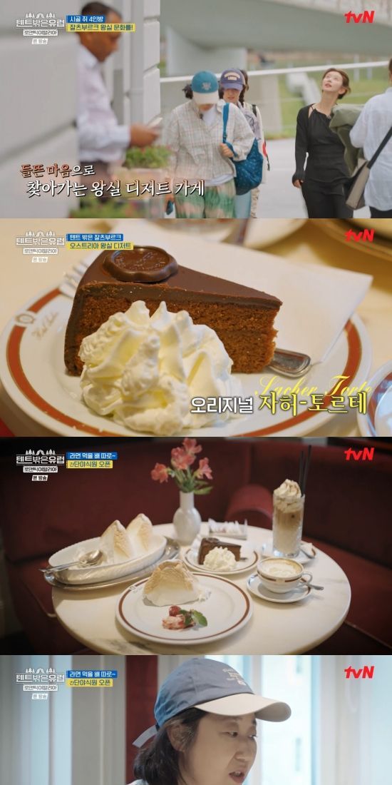 19일 방송된 tvN '텐트 밖은 유럽-로맨틱 이탈리아 편'(이하 '텐트 밖은 유럽')에서는 라미란, 곽선영, 이주빈, 이세영이 오스트리아 왕실 디저트를 먹는 장면이 전파를 탔다.