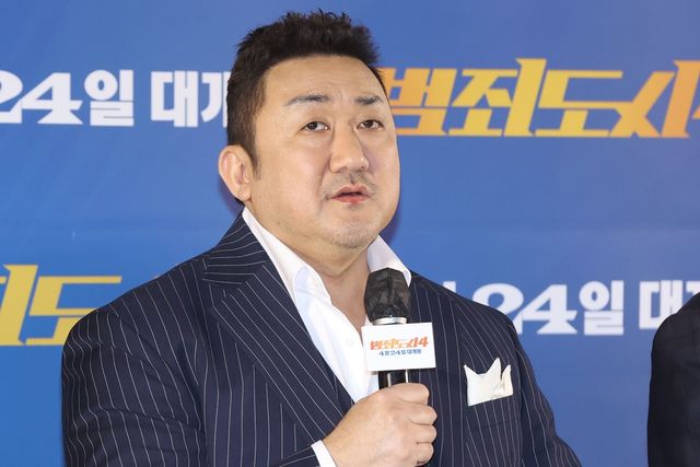 배우 마동석이 지난 4월 15일 오후 서울 강남구 메가박스 코엑스에서 열린 영화 '범죄도시 4' 기자간담회에서 인사말을 하고 있다. / 연합뉴스
