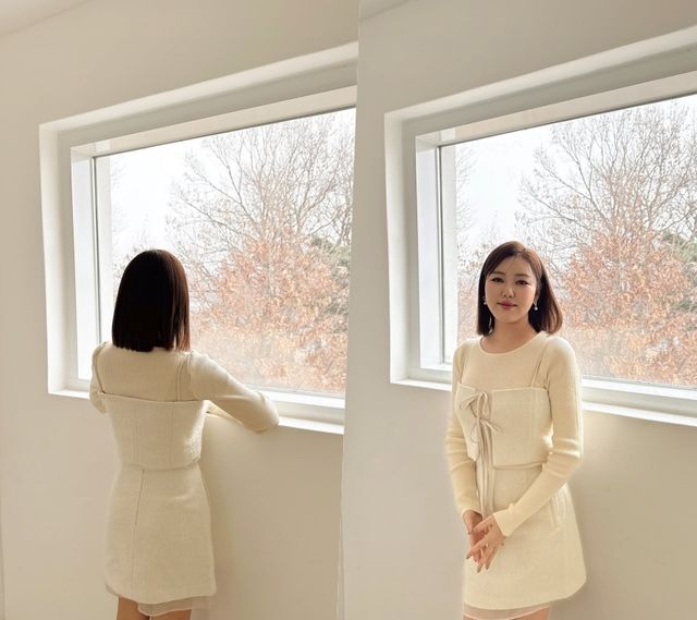사진 속 송가인은 독특한 화이트 셋업 스타일을 입고 창가에 서있는 모습이다. 리본으로 고정된 셋업에 크림톤 이너를 매칭한 송가인은 미모를 뽐내며 감탄을 더한다.