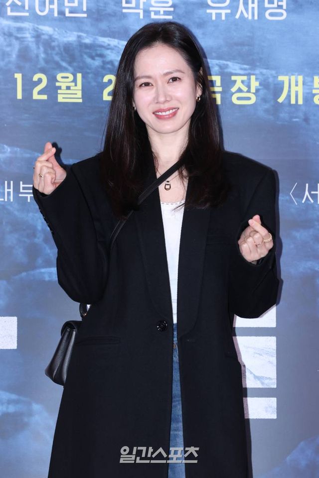 손예진은 19일 오후 서울 용산구 CGV용산아이파크몰에서 열린 영화 ‘하얼빈’ VIP 시사회에 참석했다. 손예진이 현빈의 작품 시사회에 참석한 건 이번이 처음이다.