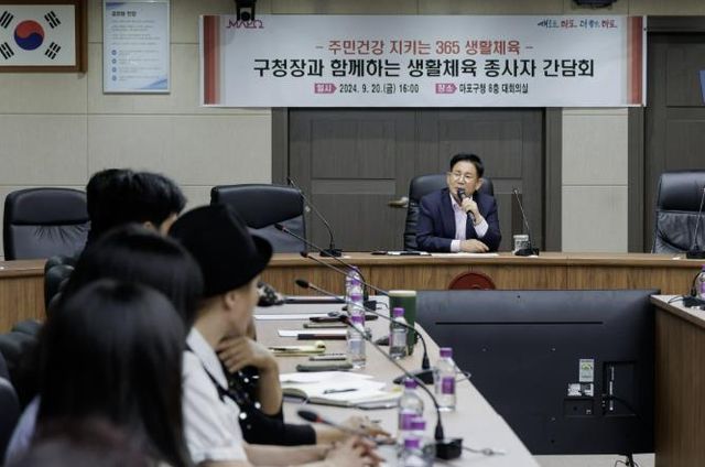 | ▲ 2024년 9월 박강수 마포구청장이 생활체육 종사자들의 고충을 경청하고 있다. |