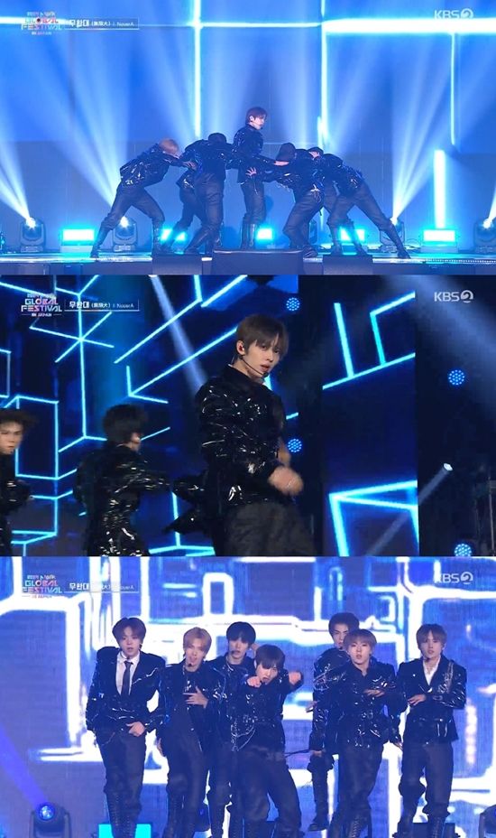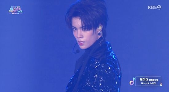 누에라(판, 린, 미라쿠, 현준, 기현, 준표, 유섭)는 지난 19일 오후 방송된 KBS 2TV '2024 뮤직뱅크 글로벌 페스티벌 인 재팬'에 등장해 선공개 디지털 싱글 '무한대 (無限大)' 무대를 최초로 선사했다.