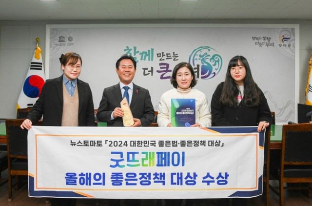 [파이낸셜경제=김예빈 기자] 부여군은 서울 여의도에서 열린 ‘2024 대한민국 좋은법·좋은정책 대상 시상식’에서 굿뜨래페이가 올해의 좋은정책 대상을 수상했다고 20일 밝혔다.