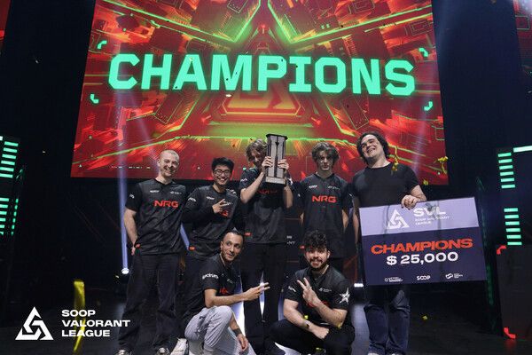 SOOP은 지난 15일(일) 서울 상암 SOOP 콜로세움에서 진행된 글로벌 발로란트 대회 ‘SVL(SOOP VALORANT LEAGUE) 2024’에서 NRG가 우승을 차지했다고 밝혔다. 정규 리그 오프시즌에 진행된 이번 대회에는 인기 팀들이 새로운 로스터로 대회에 참여하며 내년 시즌에 대한 전력을 가늠하고 순위를 예측하는 재미를 더했다.