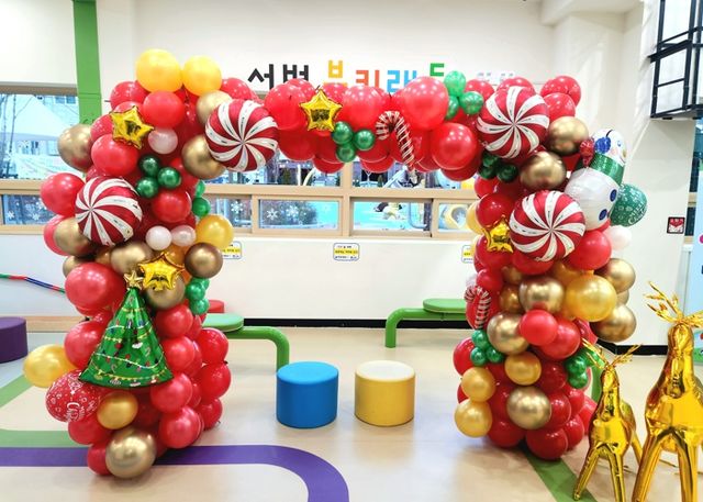크리스마스 분위기에 맞는 대형 아치형 풍선 트리를 설치, 풍선 곳곳에 귀여운 사탕, 사슴 등 조형물로 포토존을 조성해 기념사진을 찍을 수 있도록 했다.