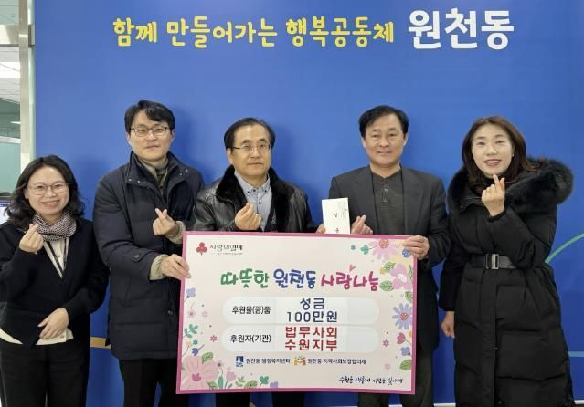 [와이뉴스] 수원시 영통구 원천동은 지난 18일 법무사회 수원지부가 소외된 이웃들에게 따뜻한 마음을 전하기 위해 100만원을 기부했다고 밝혔다.