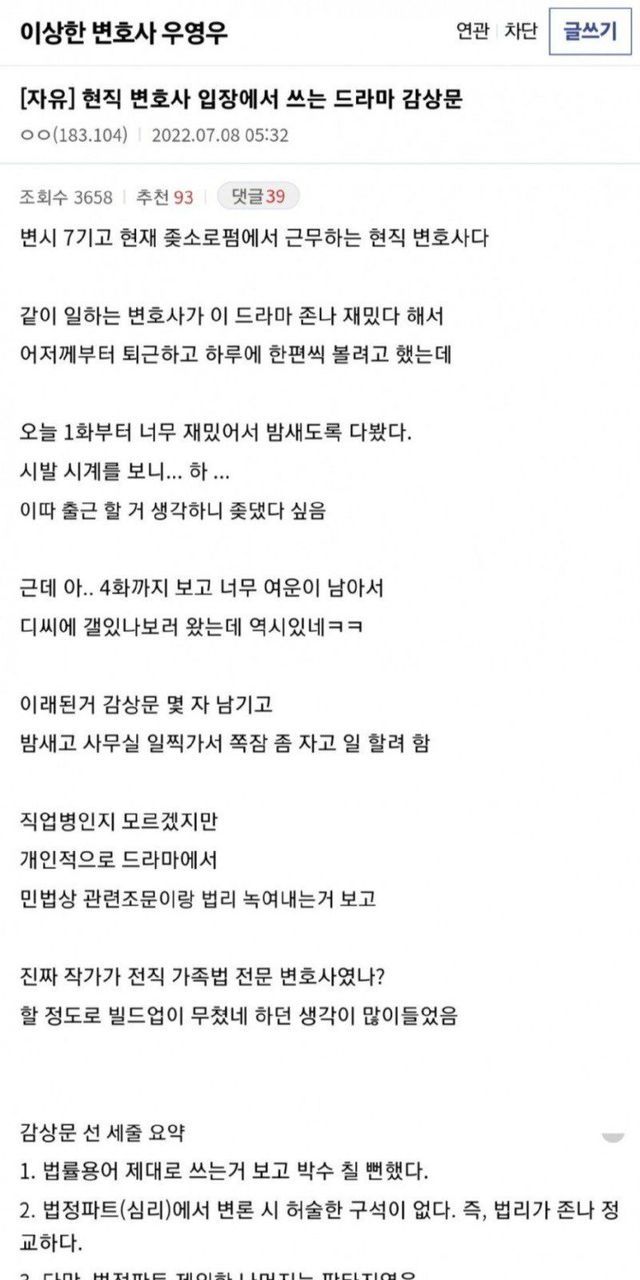 드라마 우영우 최고의 판타지 요소인