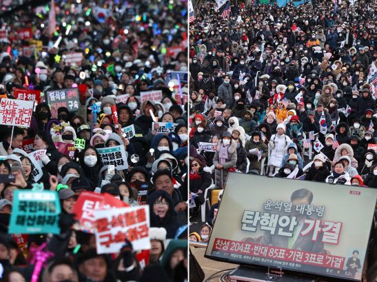 국회에서 윤 대통령 탄핵안이 가결된 지난 14일 여의도에서 열린 탄핵 찬성 집회에는 주최 측 추산 200만명이 운집했다.