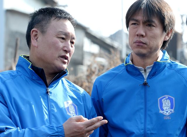 홍명보와 허정무 전 축구 국가대표팀 감독 / 연합뉴스