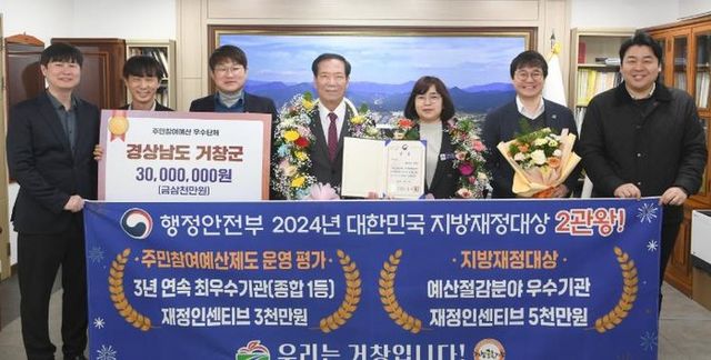 주민참여예산제도 성과 평가는 전국 군 단위 82개 지자체를 대상으로 하고 거창군은 군부 종합 1위로 1개 기관만 받는 최우수기관에 선정되어 3년 연속 최우수기관의 영예와 함께 재정인센티브 3,000만 원도 받는다.