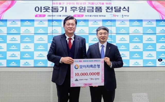 한편, 모아저축은행은 지난 2020년부터 매년 미추홀구에 후원금을 전달하며 지역 저소득 주민들에 대한 지속적인 후원을 이어오고 있다.