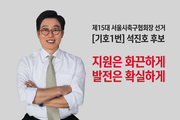 석 후보는 “서울 축구의 새로운 미래를 열어갈 기회를 주신다면, 유권자 여러분께 신뢰와 성과로 보답하겠다. 이번 제 선거 슬로건이 "화끈하게 지원하고, 확실하게 발전하자"라고 이야기했다 . 그의 ENK FC 창단 경험, 투자 의지, 그리고 차별화된 비전은 서울시축구협회장 선거에서 주목할 만하다.