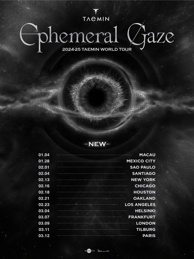 한편 ‘이페머럴 게이즈’의 휴스턴, 로스앤젤레스 지역 추가 예매 오픈은 한국 시간으로 오는 21일 오전 2시부터 진행되며, 태민은 오는 1월 4일 마카오 스튜디오 시티 이벤트 센터에서 월드투어를 이어간다.