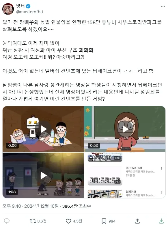 근데 페미들이 여혐 유튜버랑 콜라보 한다고 좌표찍고 난리쳐서 결국 취소엔딩
