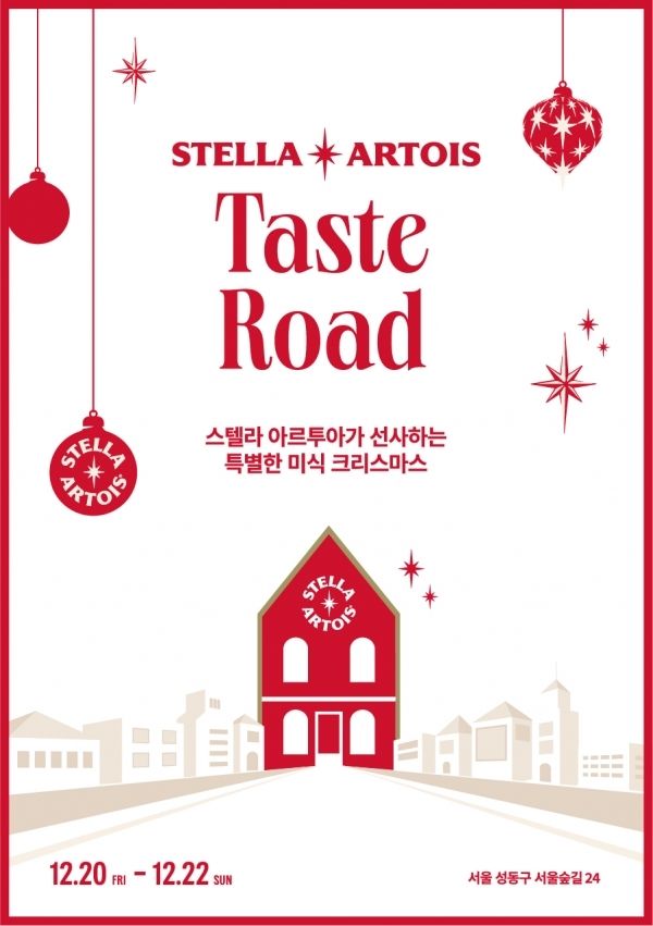 연말을 맞아 맥주와 함께하는 미식행사도 눈길을 끈다. 벨기에 프리미엄 맥주 브랜드 스텔라 아르투아 (Stella Artois)가 12월 20일 (금) 부터 22일 (일)까지 서울 성수동에서 팝업 이벤트 ‘스텔라 테이스트 로드(Taste Road)’를 개최한다. 이번 행사는 크리스마스 팝업 공간 ‘스텔라 하우스’에서 스텔라 아르투아가 엄선한 서울숲 인근 레스토랑 다양한 메뉴와 맥주를 페어링하는 행사다.