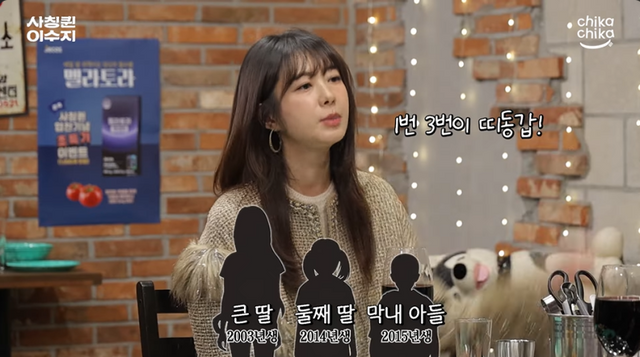 이날 게스트로 출연한 이요원은 이수지와 육아 이야기를 하던 중 “저는 아이가 세 명이다. 딸, 딸, 아들이다. 1번과 3번이 띠동갑이다. 2, 3번은 연년생이라 한 10년 터울이 있었다”고 밝혔다.